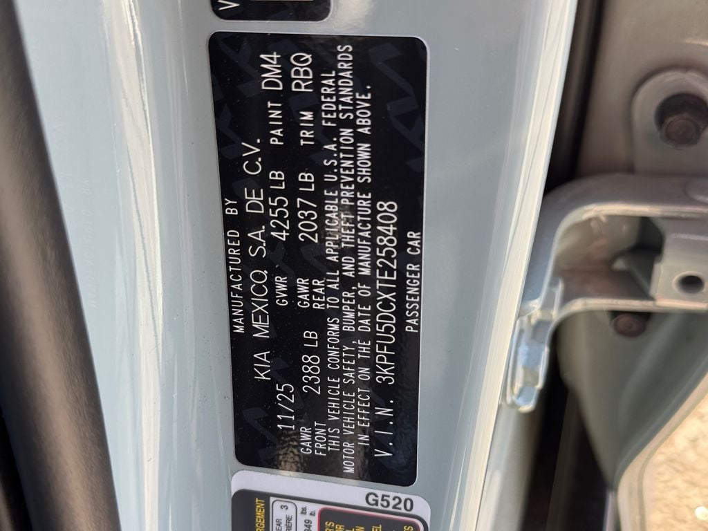 Recent Arrival! Price includes: $600 - KFA Dealer Choice Program: $600 discount and 5.25% APR for 36 months. $30.08 per $1000 financed. Available to well qualified buyers who finance through Kia Finance America. 506. Exp. 03/02/2026