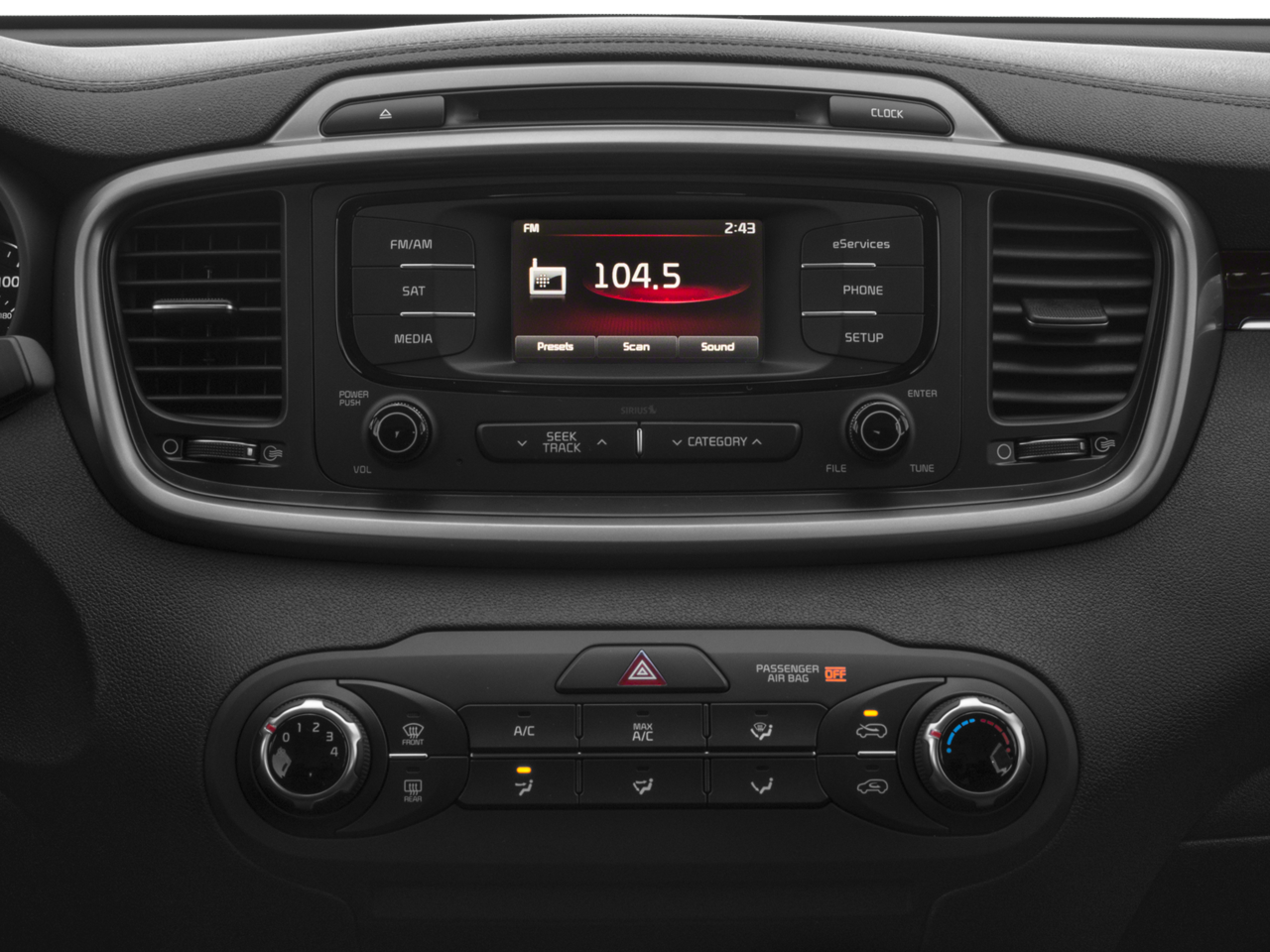 - Radio: AM/FM/CD/MP3/SiriusXM -inc: mono TFT LCD screen, 6-speakers, Bluetooth® control w/voice recognition, auxiliary audio/USB/iPod connevtivity, 2-console USB chargers and rear view camera
